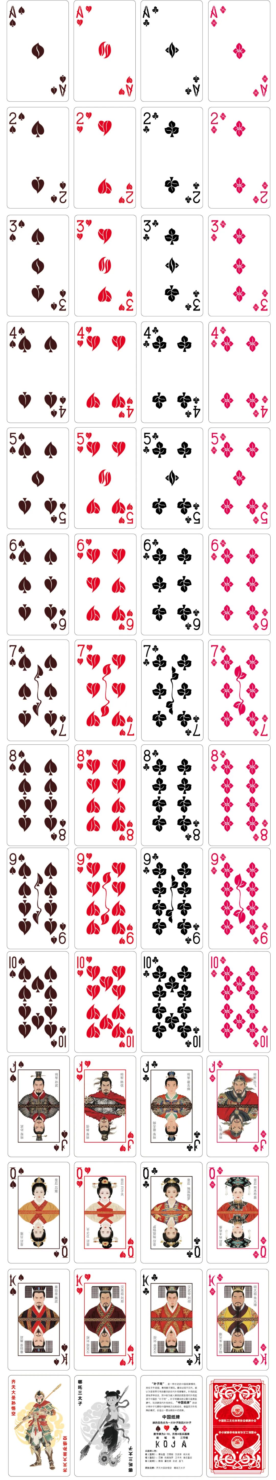 “中国纸牌”自由2-10的数字牌,四种兵器牌,每个花色一组,另有