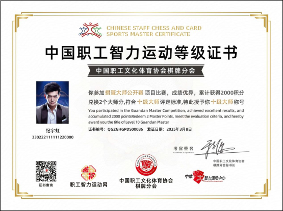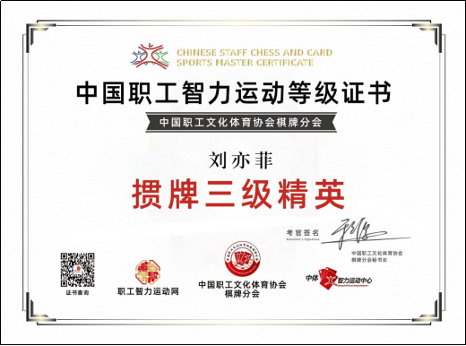 证书够硬气:中国职工文化体育协会棋牌分会发的证,官网可查!以后跟牌友交流,亮出证书,再露两手漂亮的组牌、残局破解技巧,专业度直接拉满!