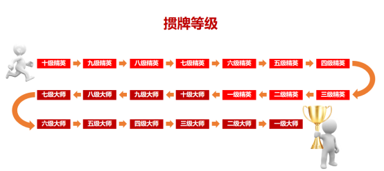 等级有奔头:掼牌分 20 级,大众是精英十级到一级,专业是大师十级到一级。比赛只要在前 80%,直接拿十级大师证,就算在后 20%,也有 3 级精英证兜底,每一步进步都有实打实的官方认可!